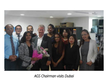 AGS Supervisory Board Chairman, Alain Taïeb visited the Dubai branch in the United Arab Emirates on Wednesday, 07 September. The two UAE AGS branches, Dubai and Abu Dhabi, have grown significantly since their opening in 2011 and Mr Taïeb commended UAE country manager, Zia Husain on his sterling job and contribution to the business growth.